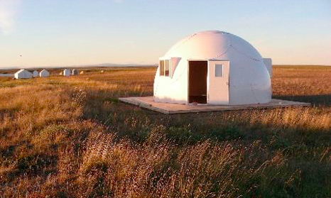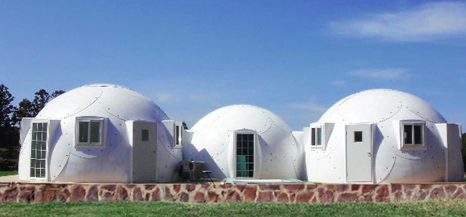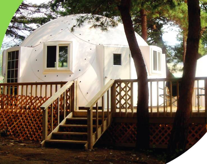 The easy to assemble InterShelter 20 ft Dome is a small prefab home that is as strong as a stick built home and as mobile as a tent — pack the pieces of the dome on a flat-bed truck and take it where you want to go.